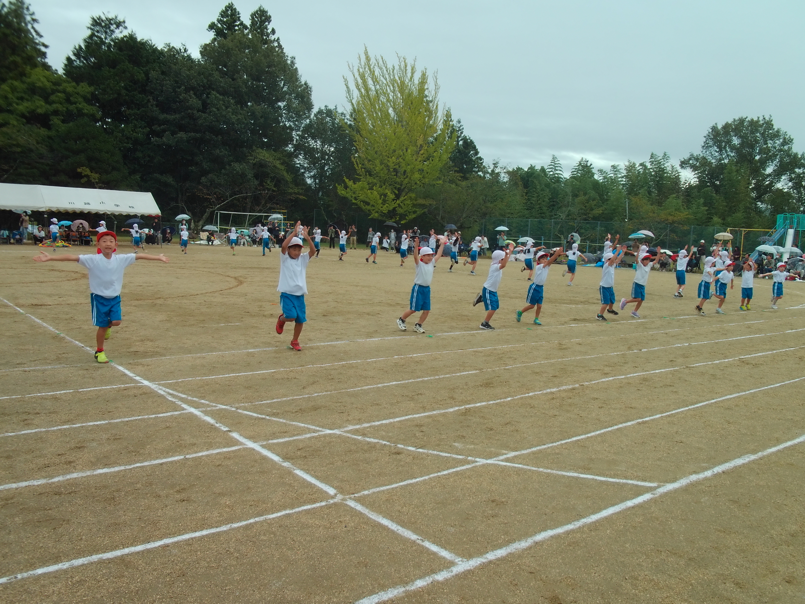 天気が読めない状況の中での実施となり、2日+αに渡る運動会となりました。雨の中ではありましたが、たくさんの保護者の皆様、来賓の皆様に来校していただき、子どもたちもとても嬉しそうでした。